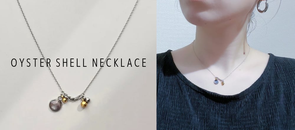oyster shell stainless chain necklace GD×SV 牡蠣殻トップデザインチェーンネックレス #147