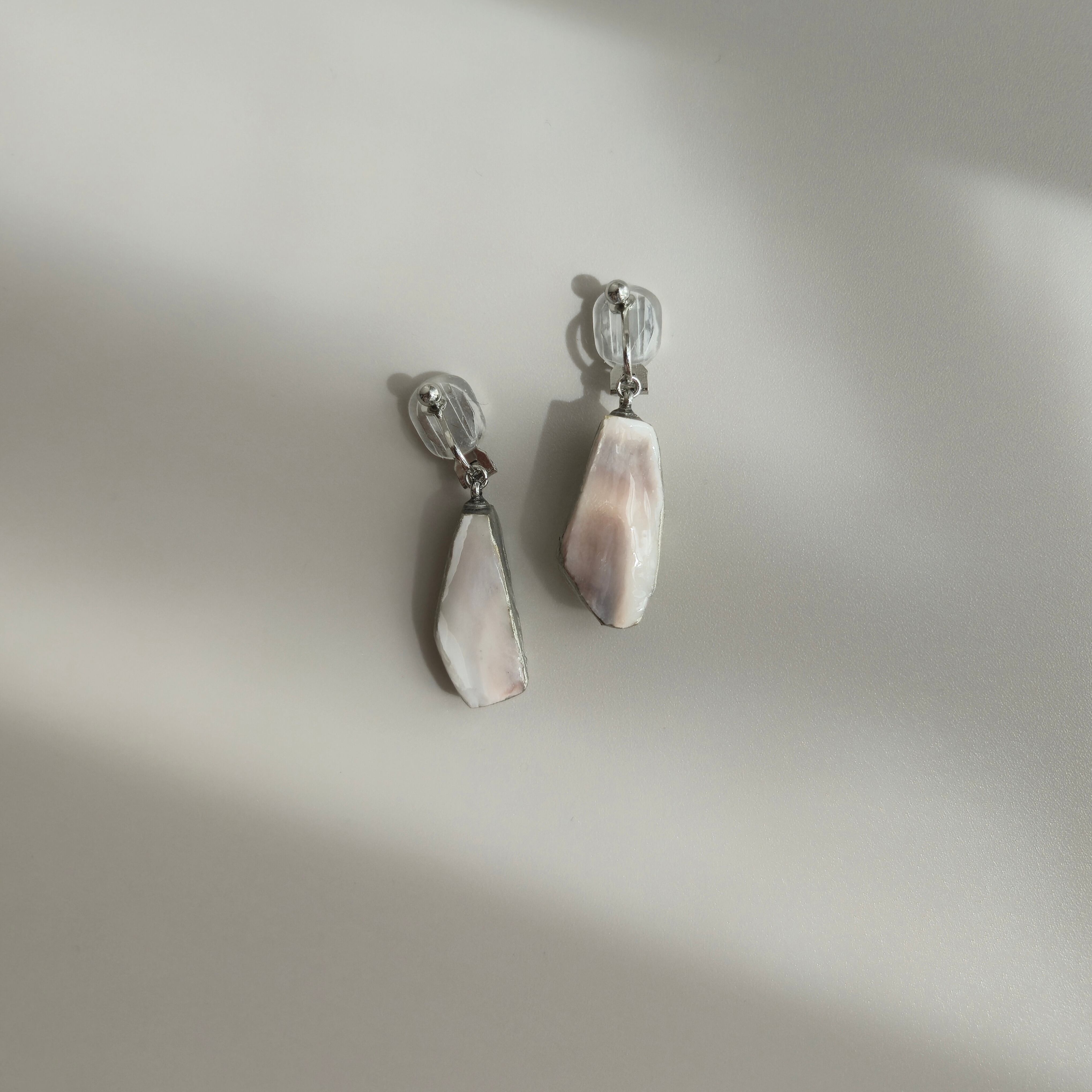 日本の伝統の継ぎ技法と牡蠣殻を合わせたイヤリングとなっております。