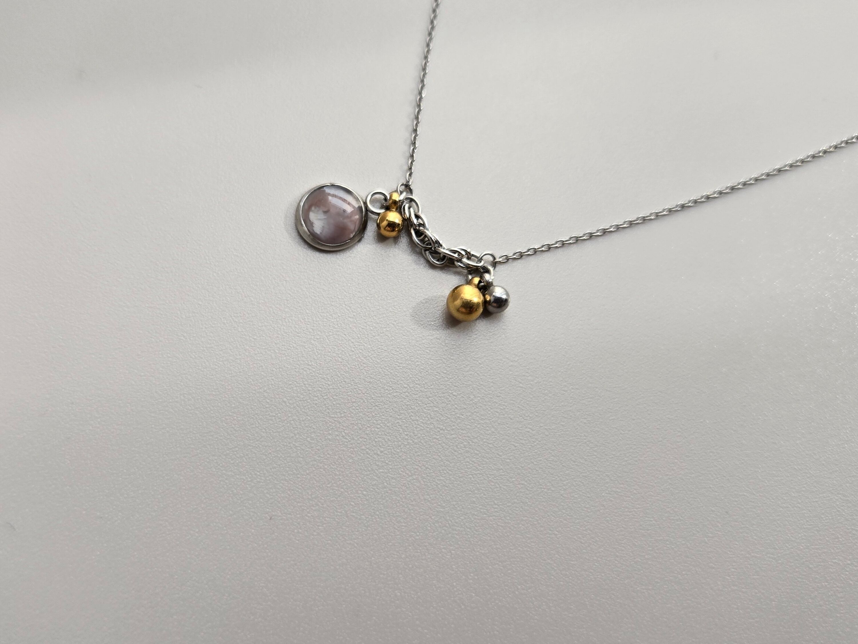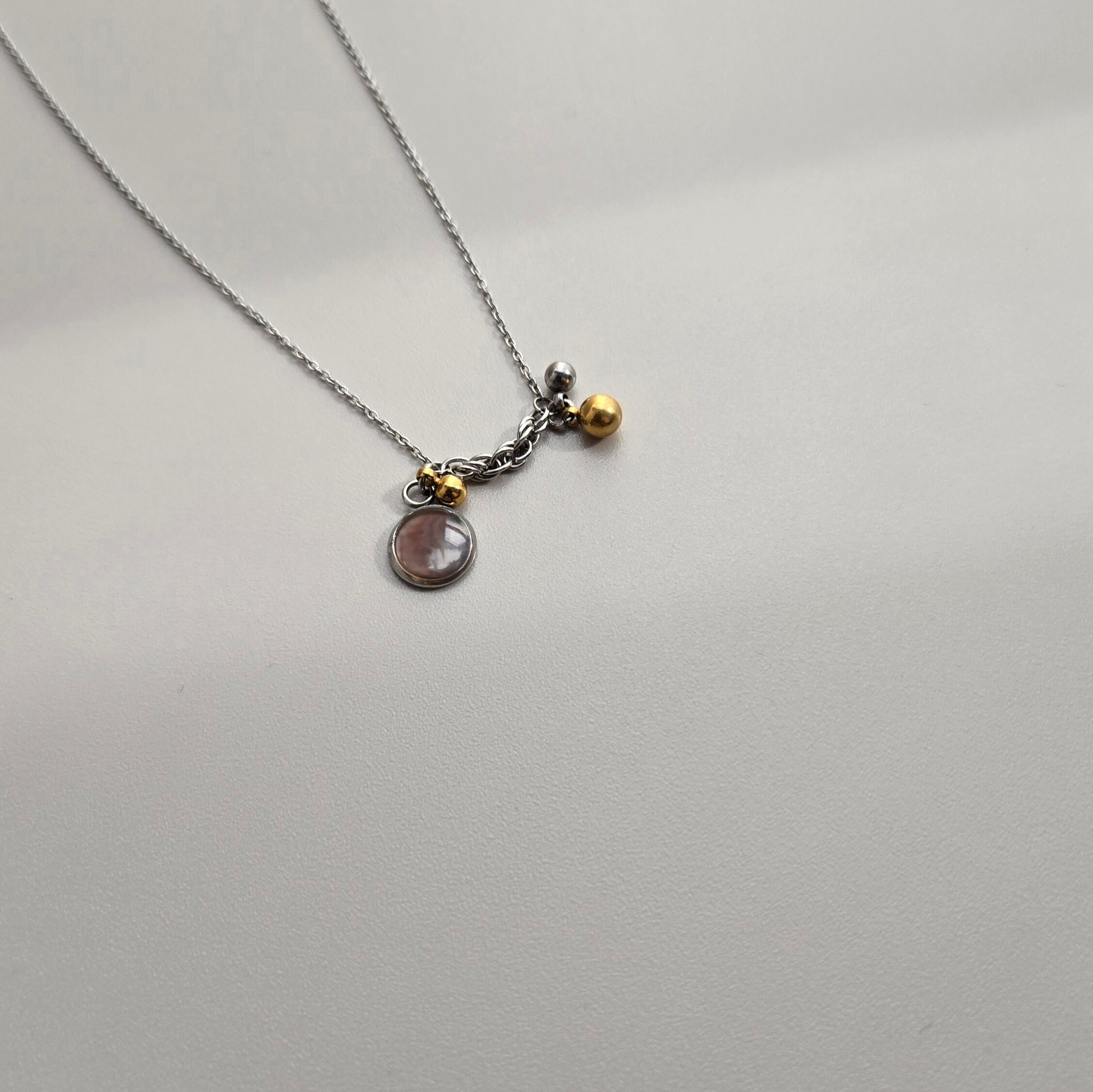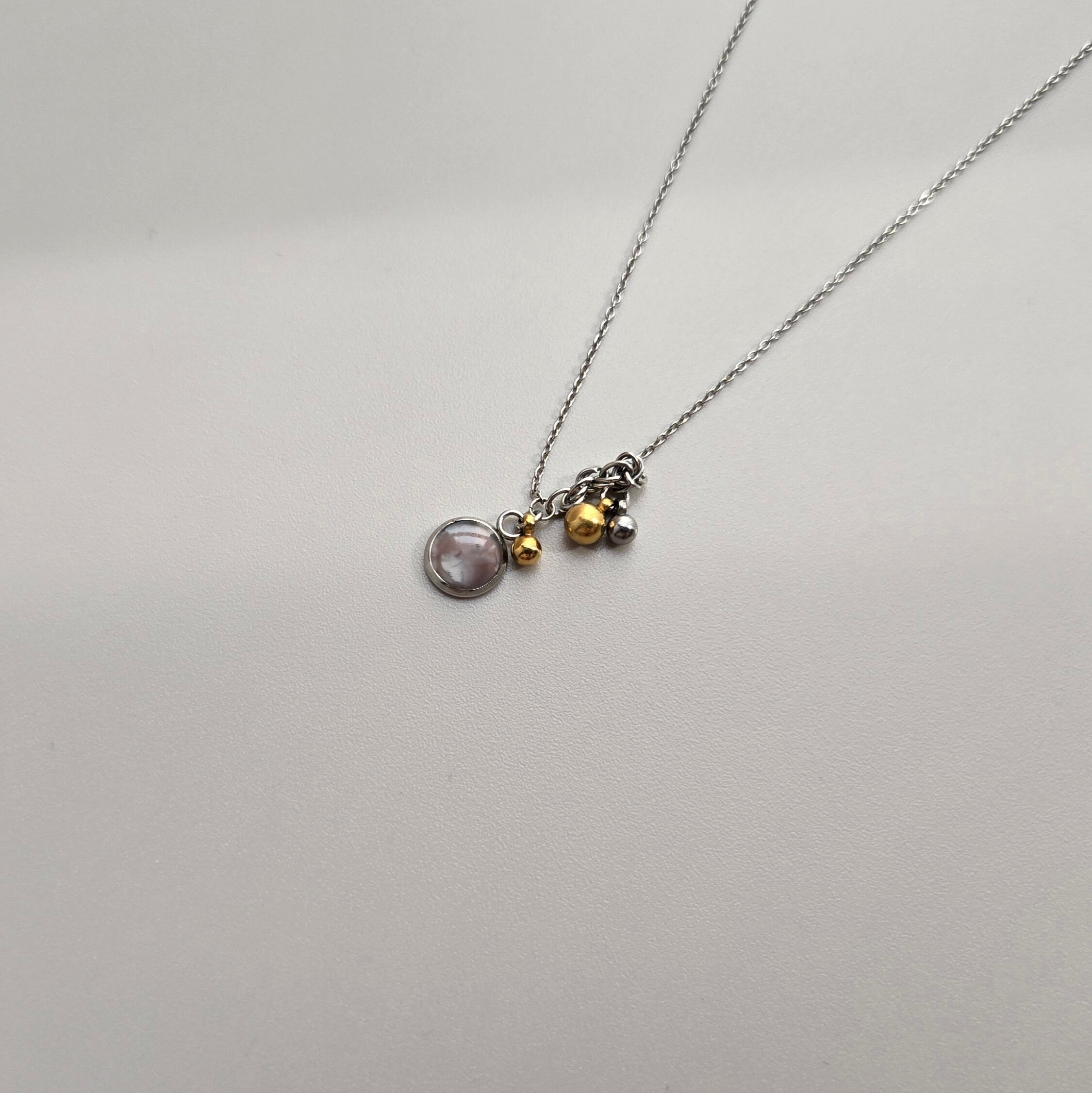 oyster shell stainless chain necklace GD×SV 牡蠣殻トップデザインチェーンネックレス #147