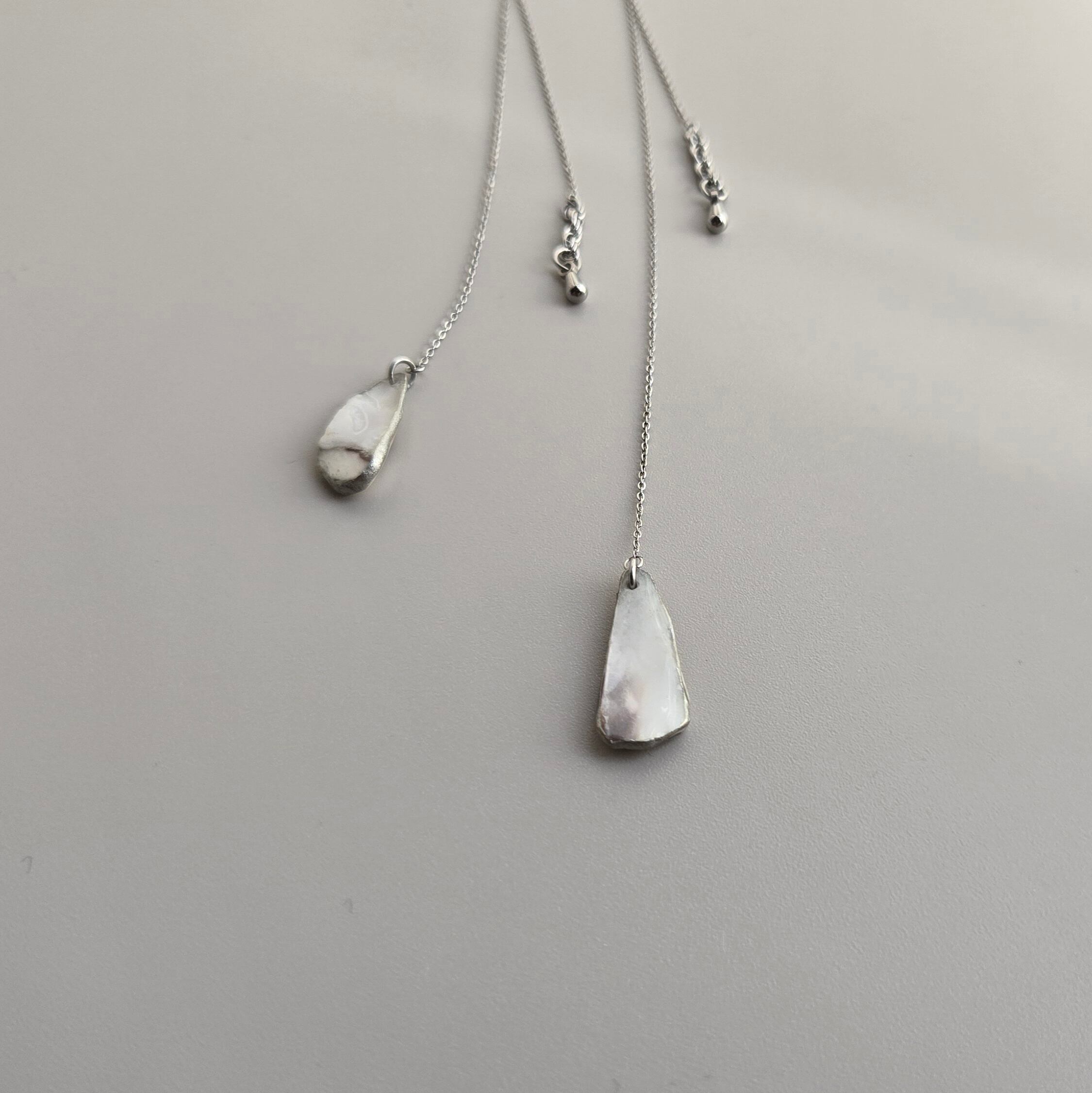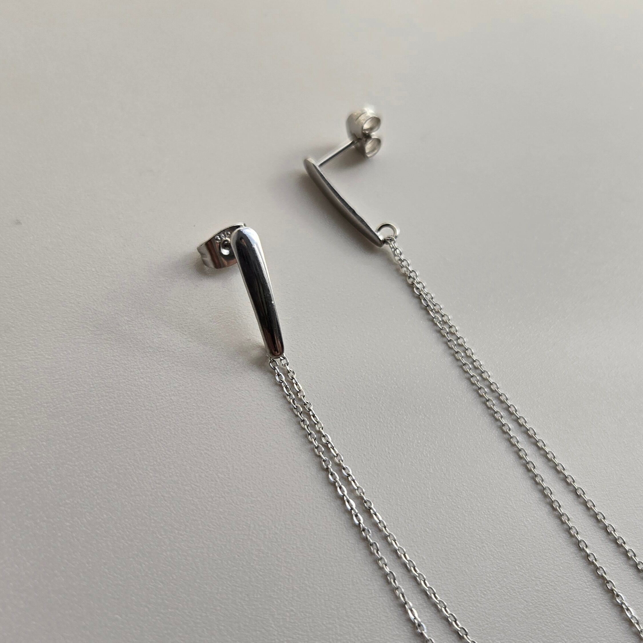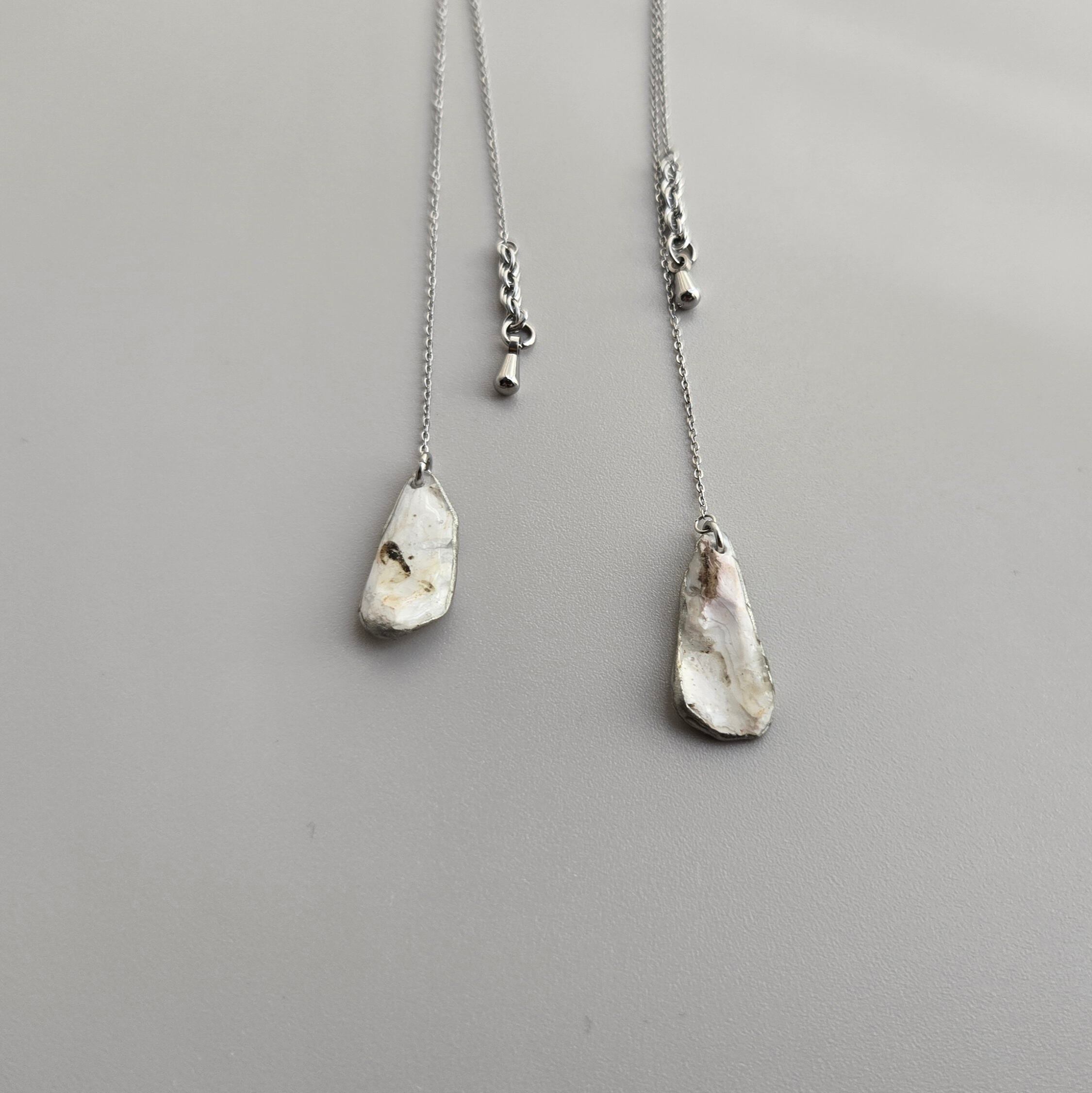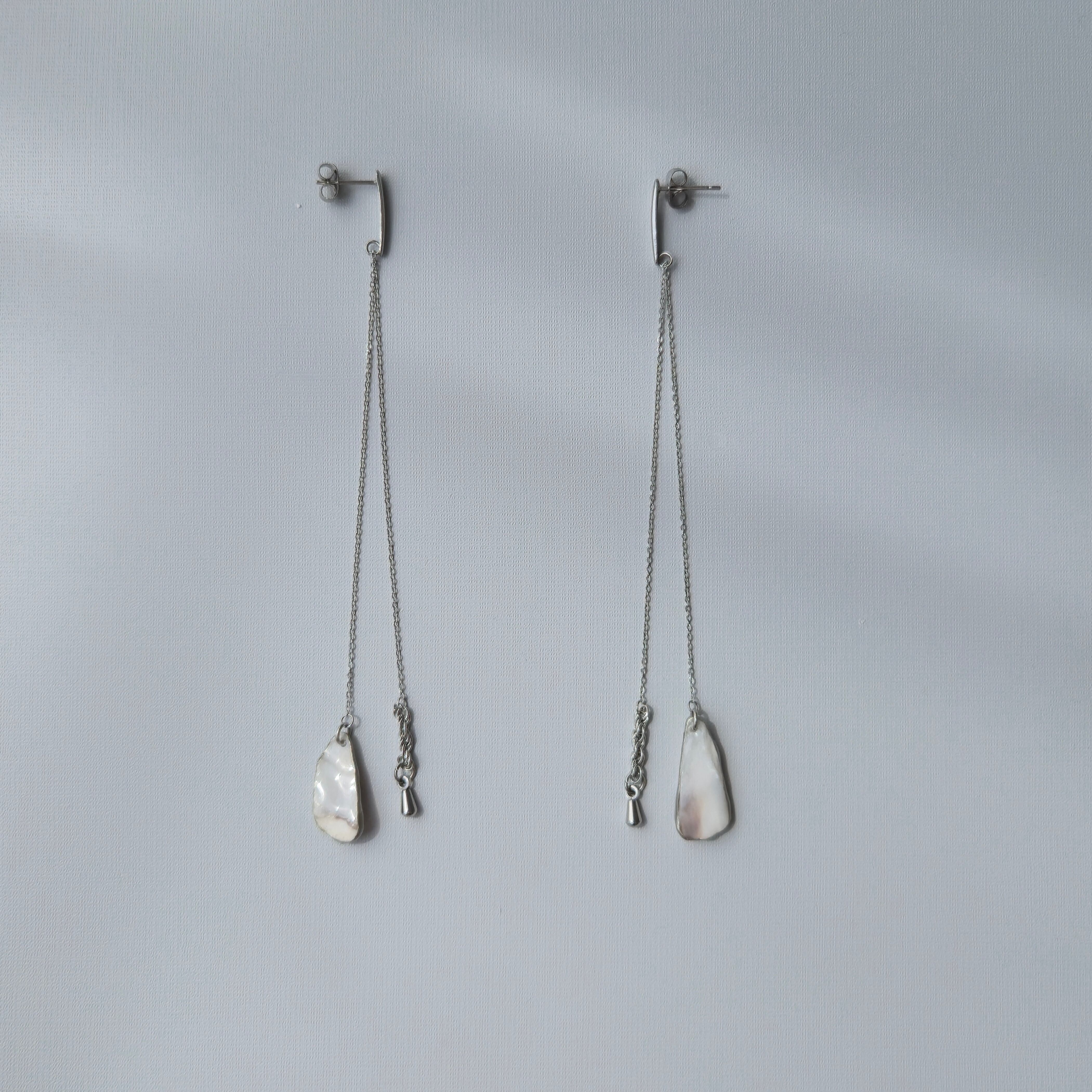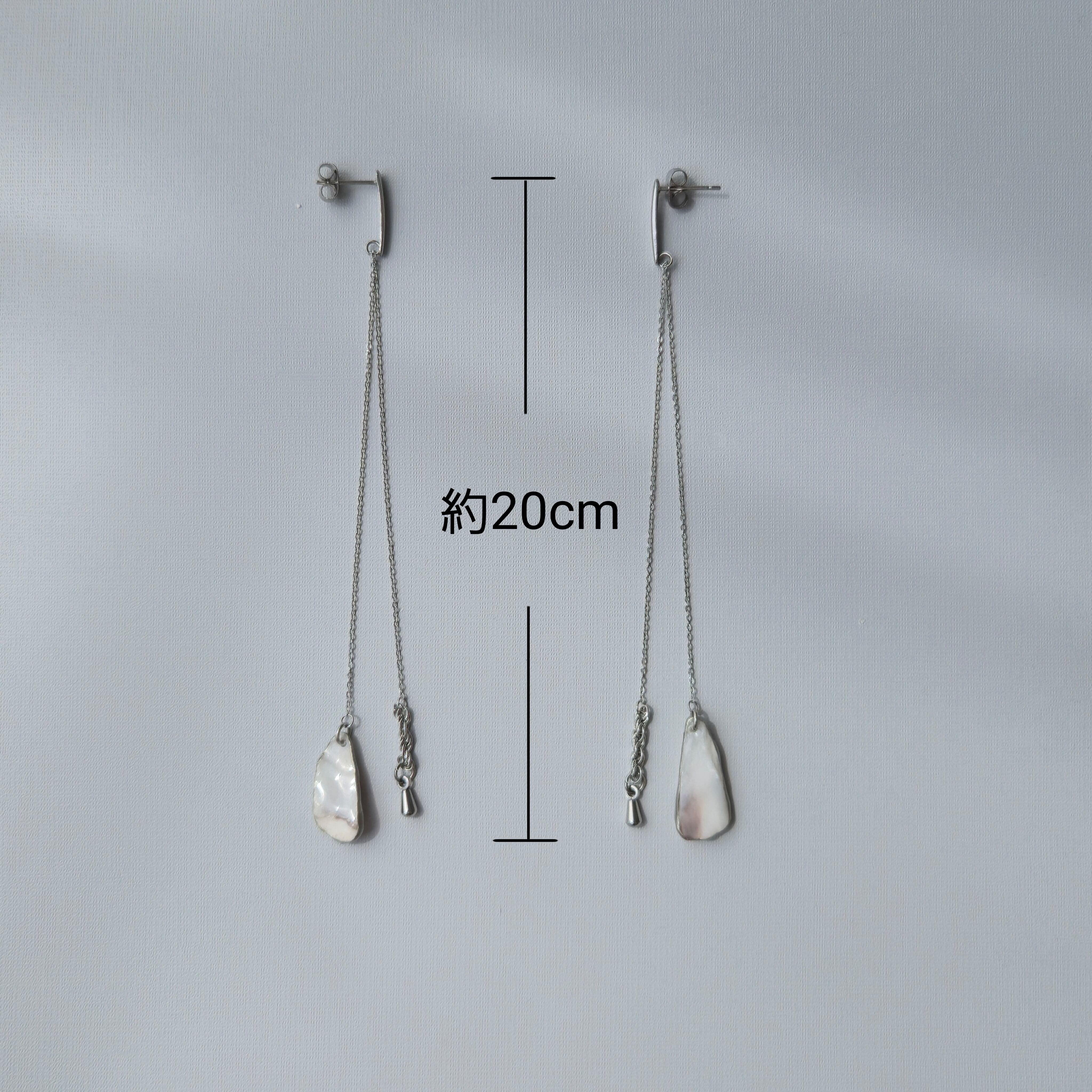 oyster shell stainless design long-chain pierce 牡蠣殻×銀継ぎ デザインチェーンピアス シルバー#148