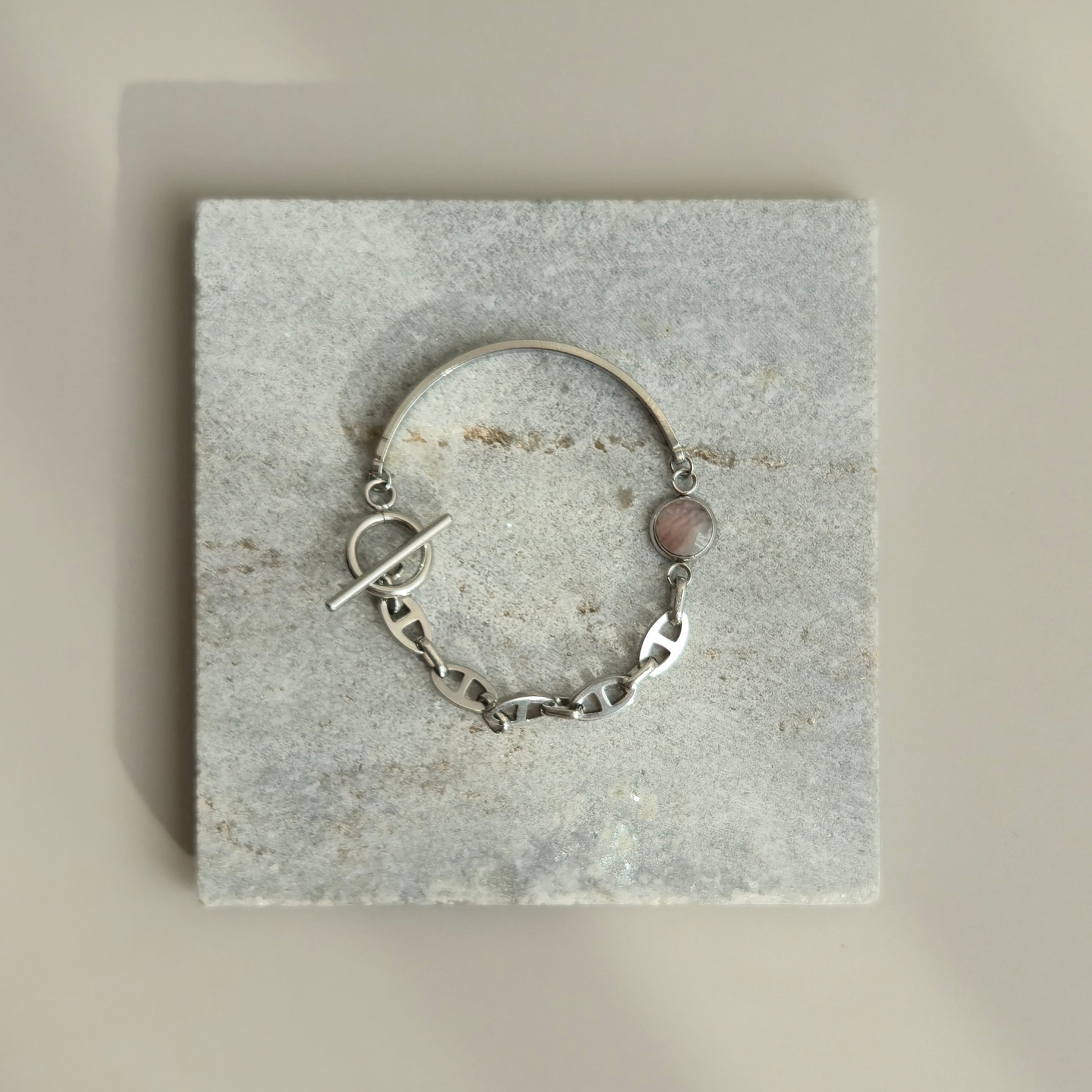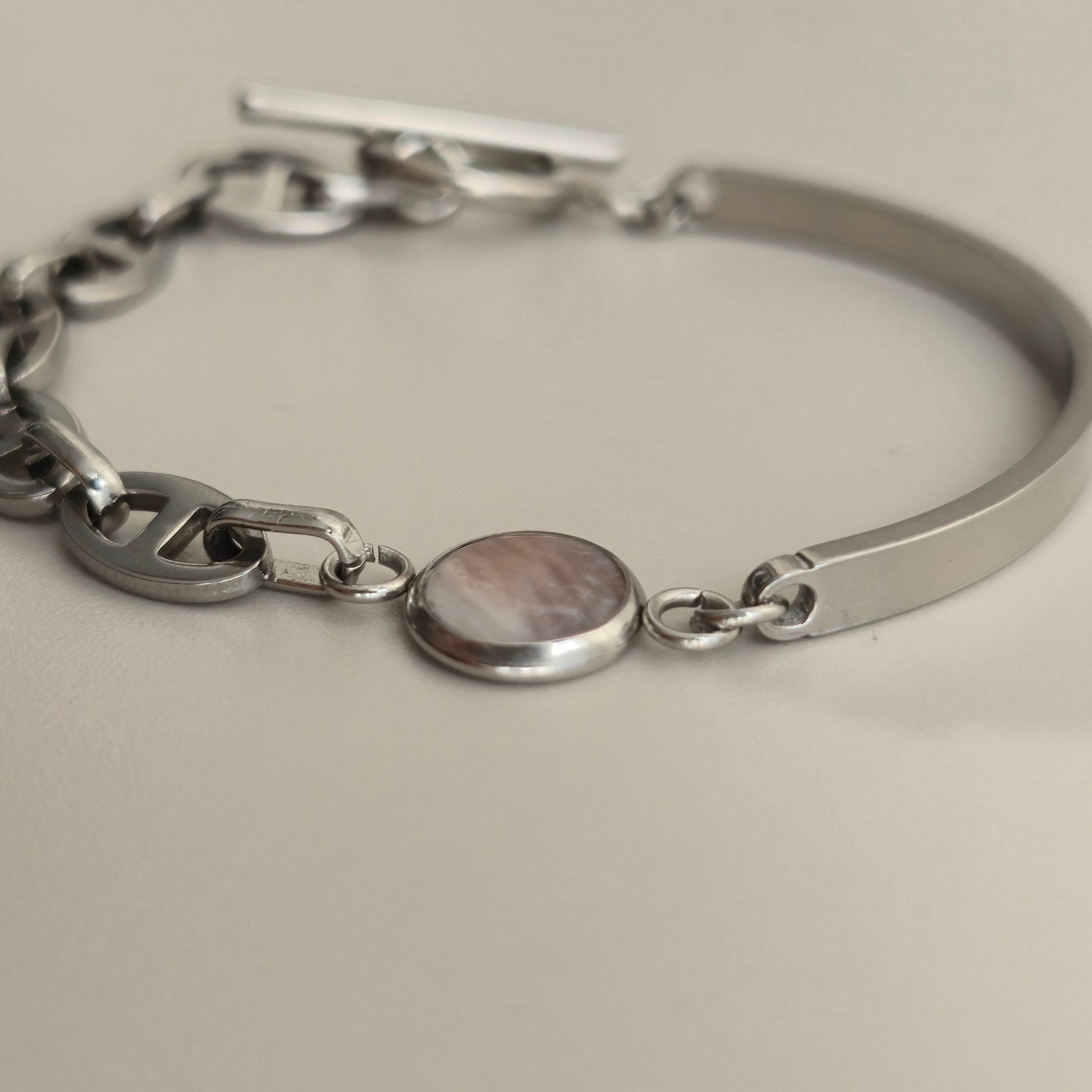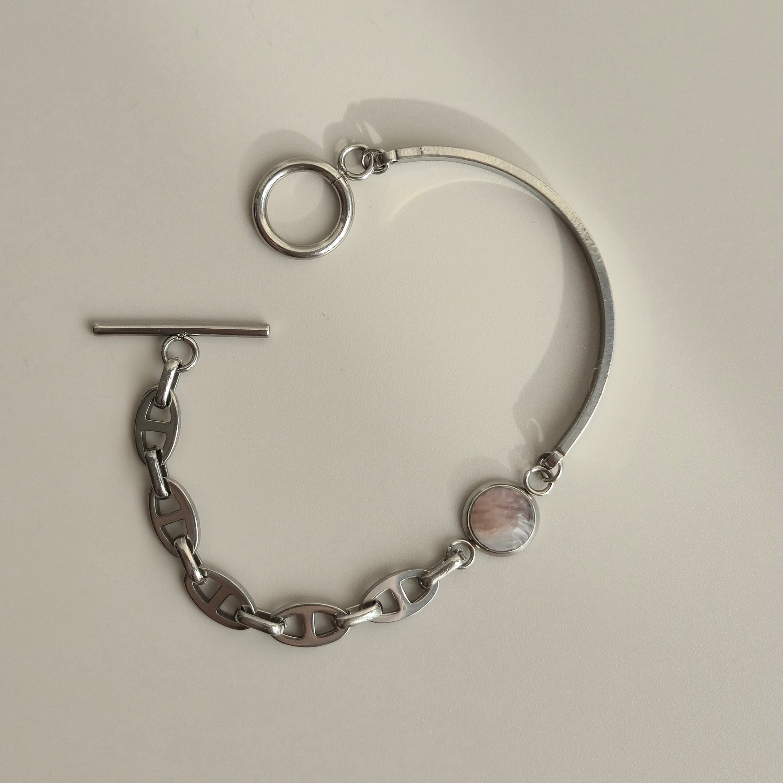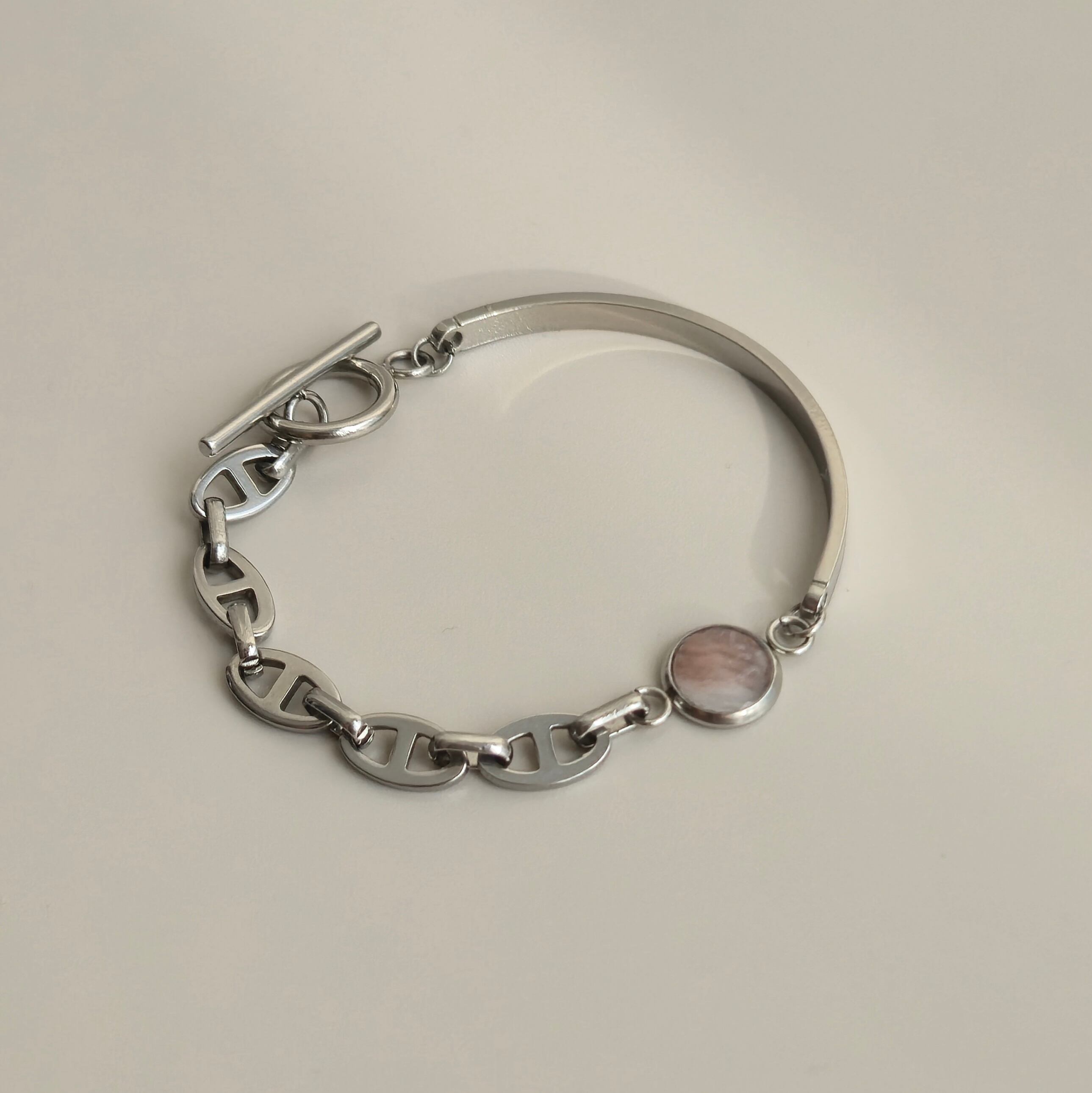 【LADY'S】oyster shell stainless bracelet SV 牡蠣殻ハーフバングルアンカーチェーン シルバー #150 ペアギフト