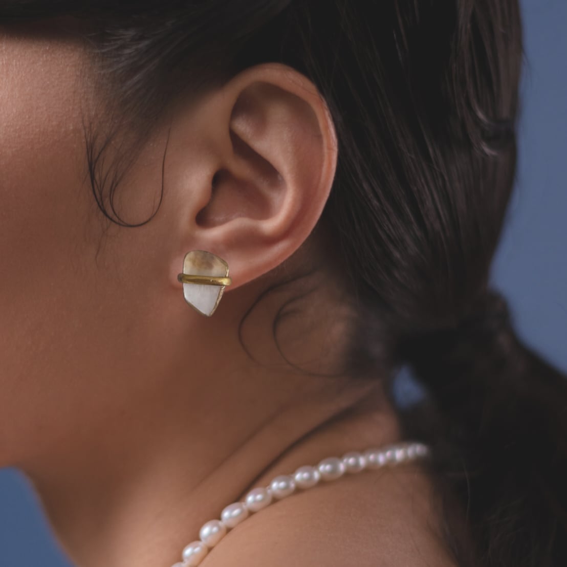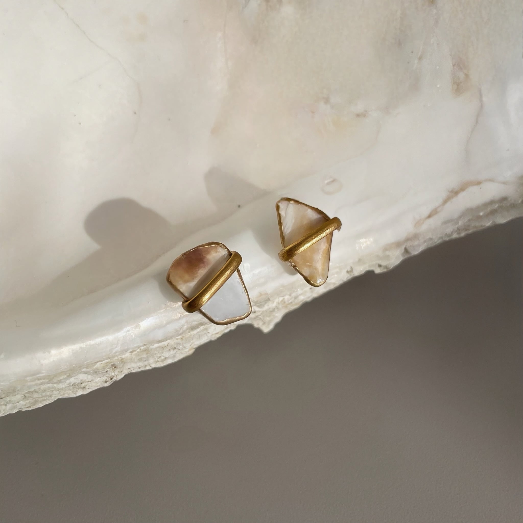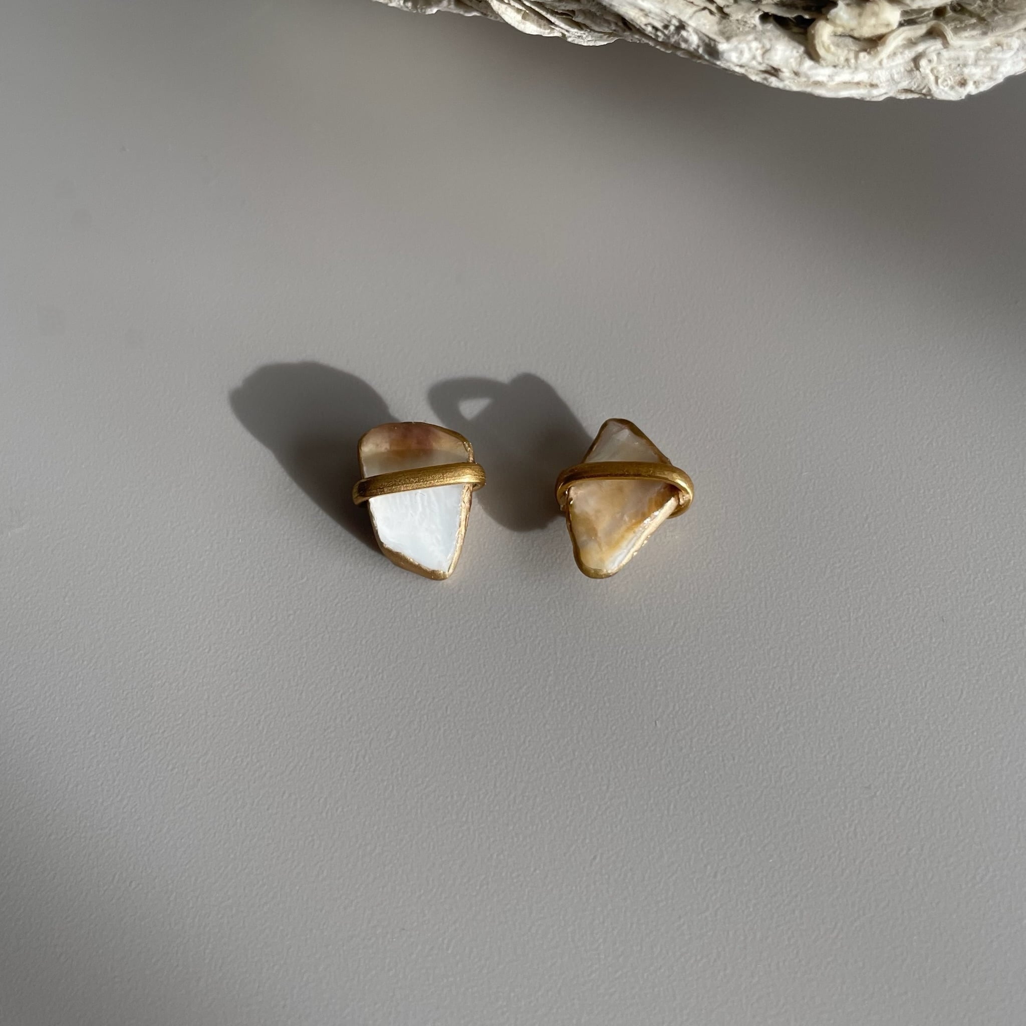 牡蠣殻のアクセントピアス
