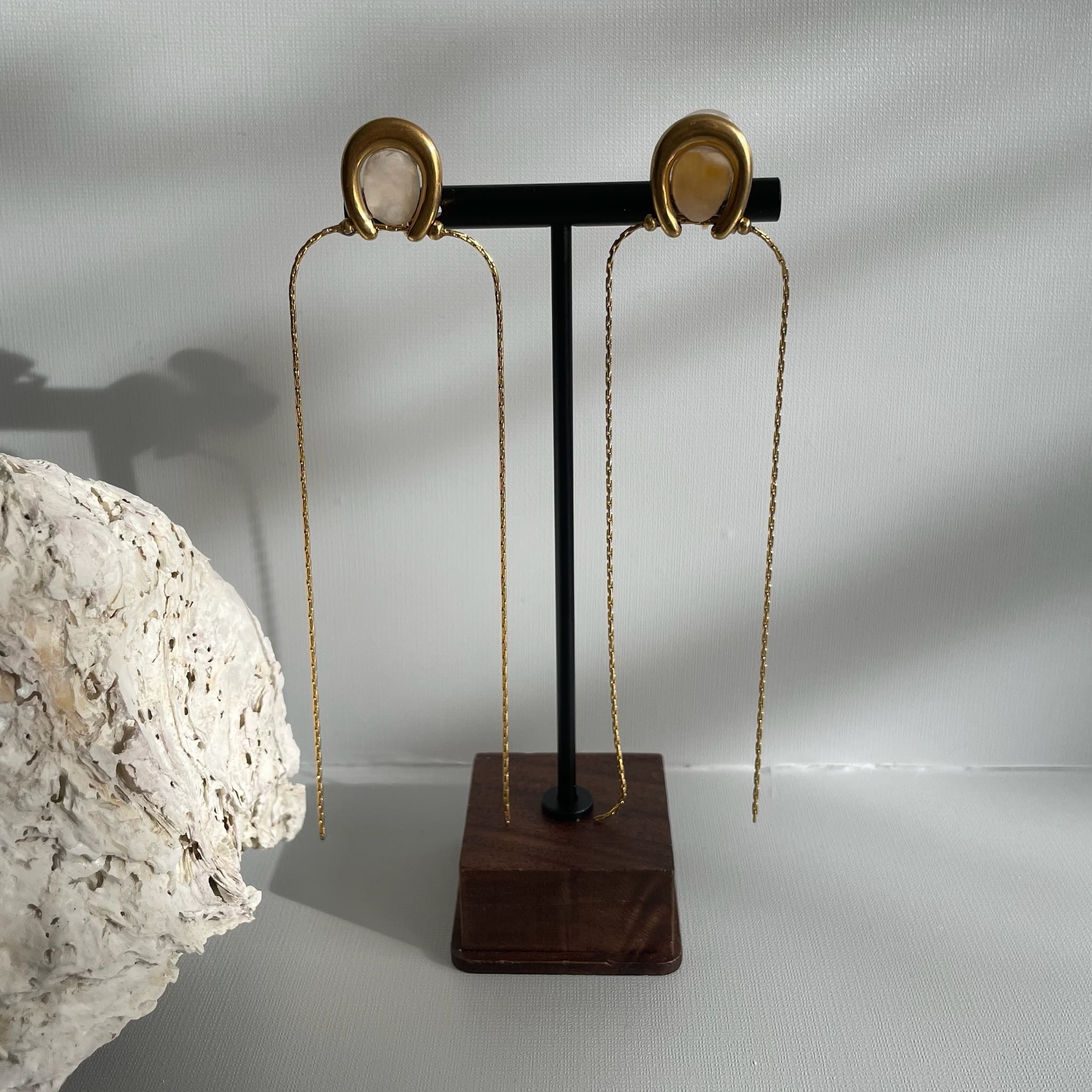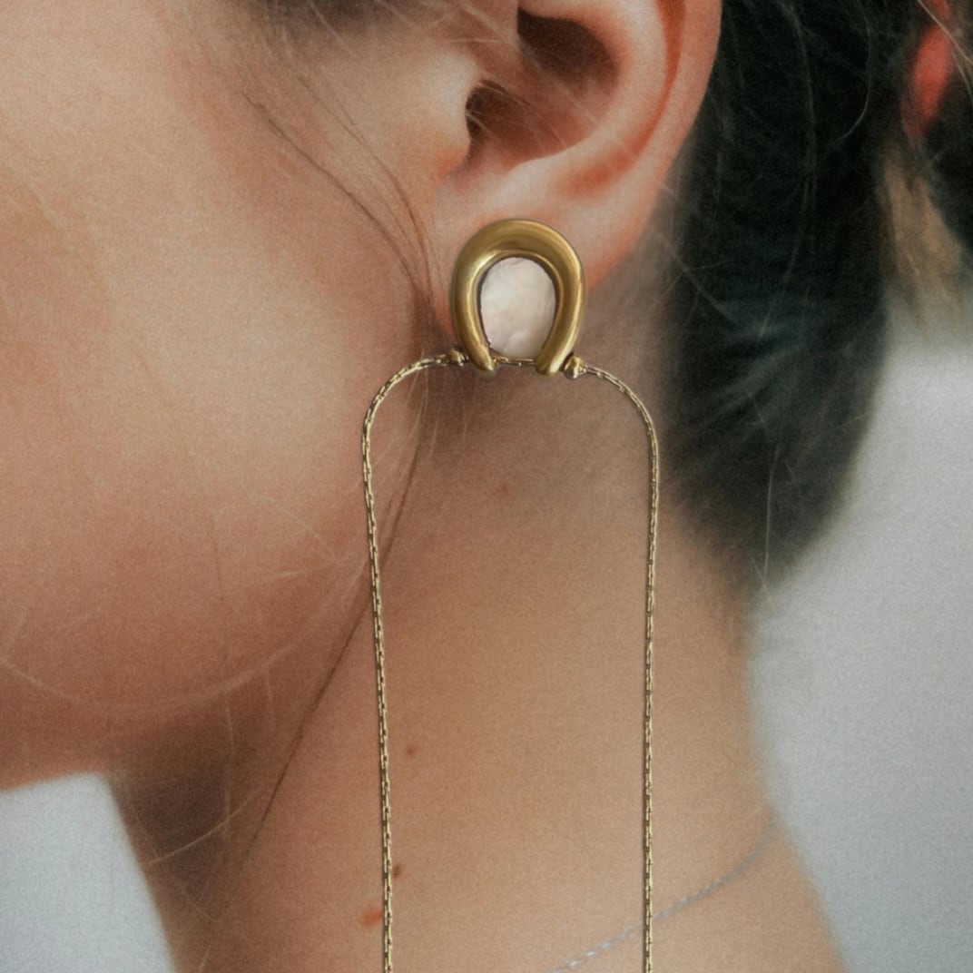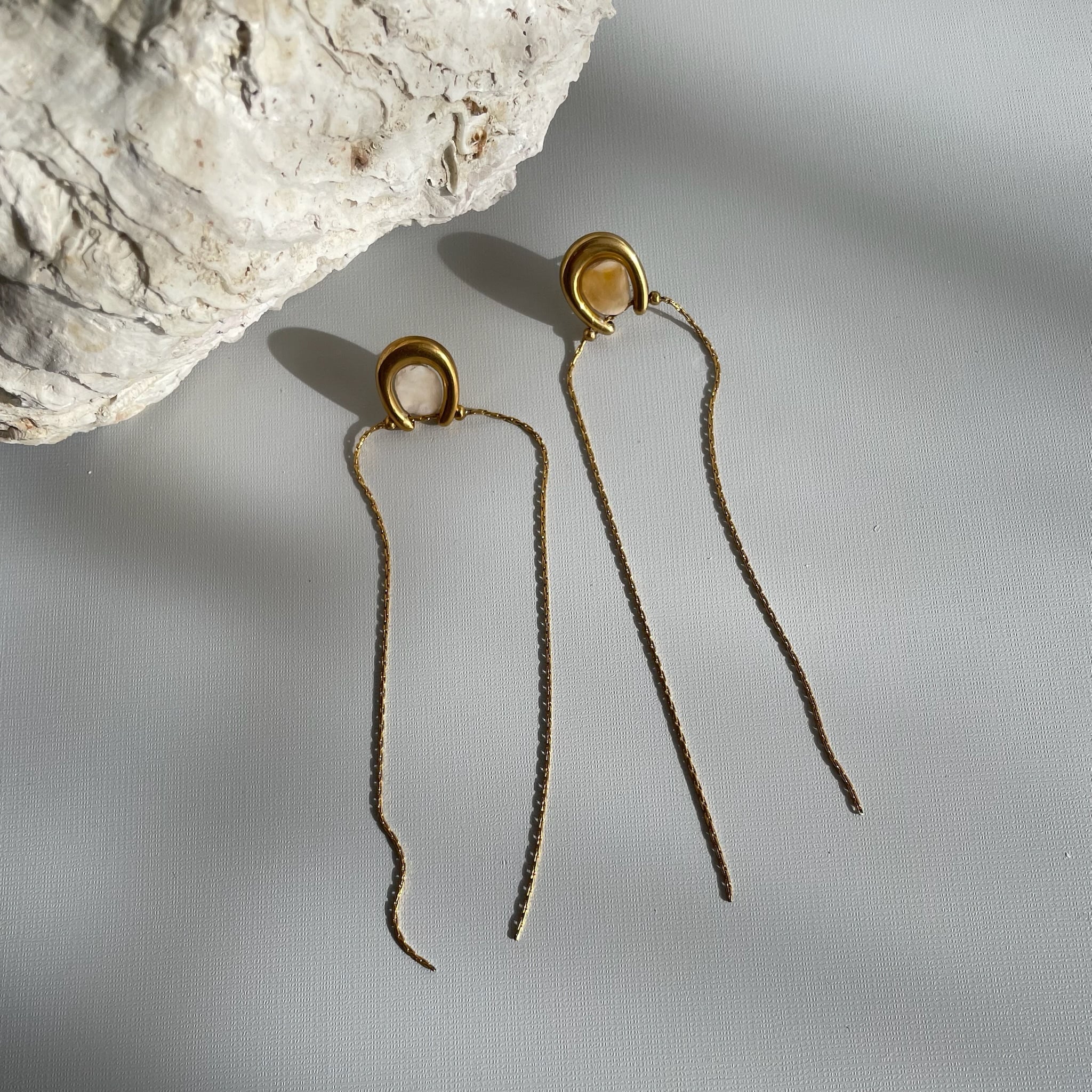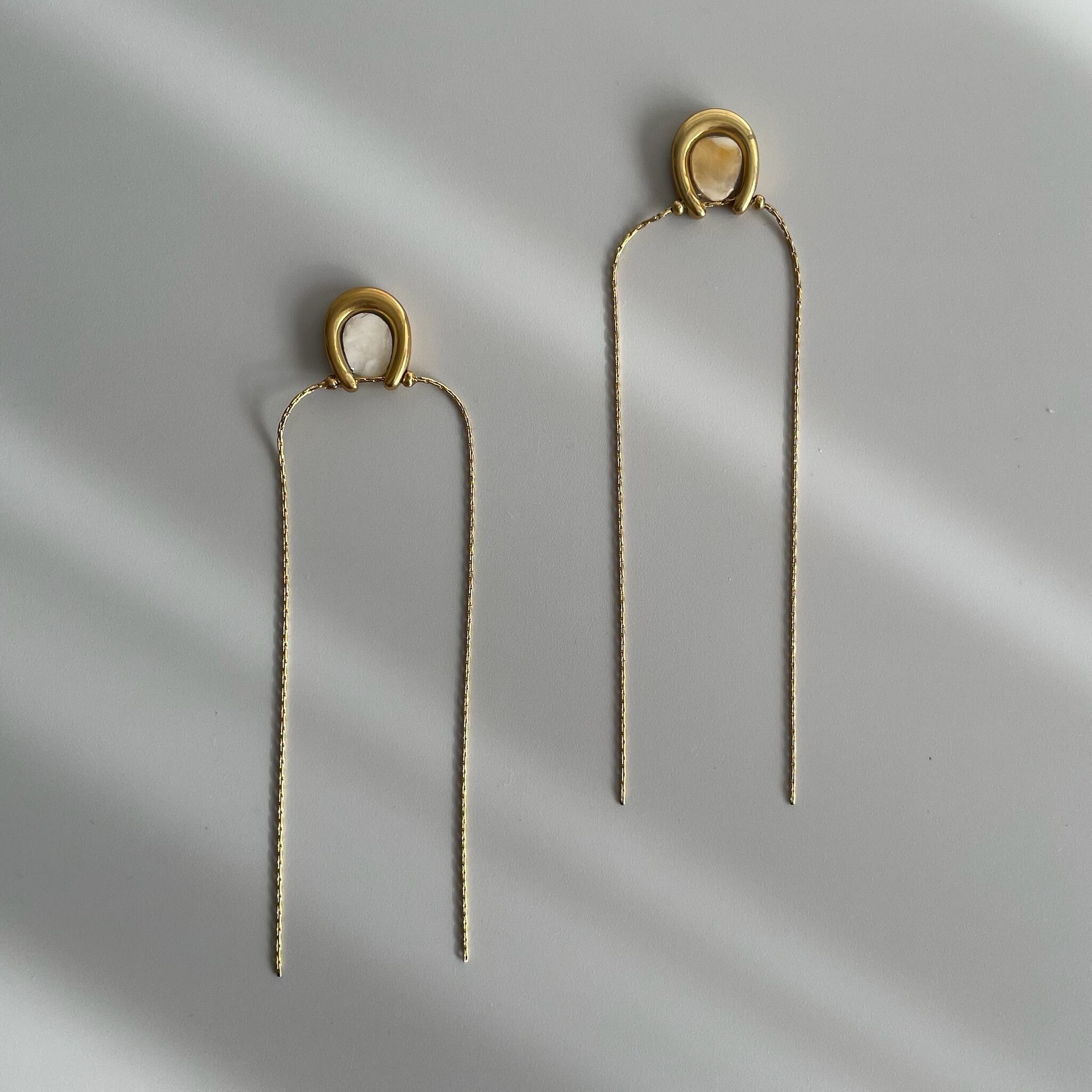 ホースシューのトップに、岩牡蠣の殻を丁寧に加工してあしらったピアス。