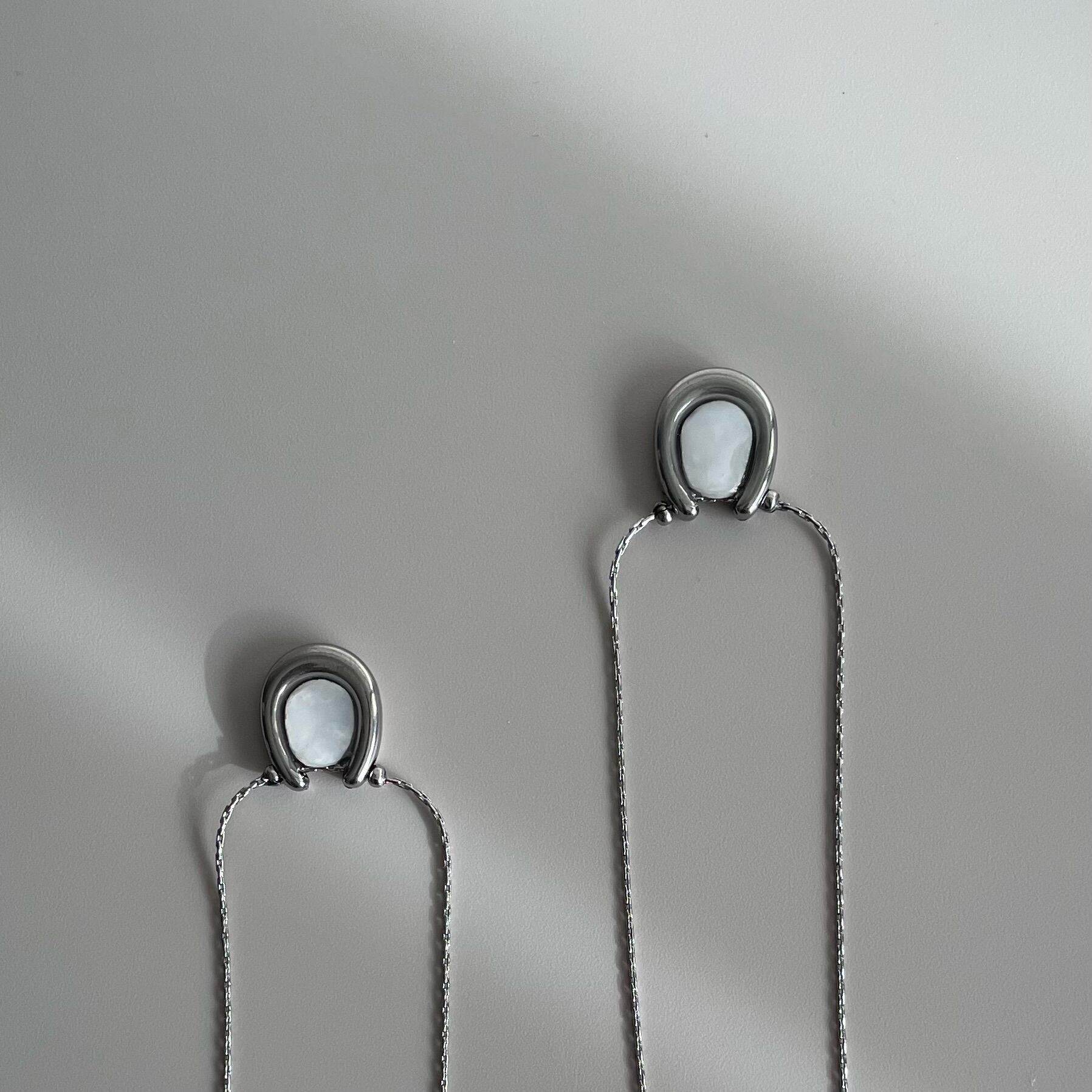 ホースシューのトップに、岩牡蠣の殻を丁寧に加工してあしらったピアス。