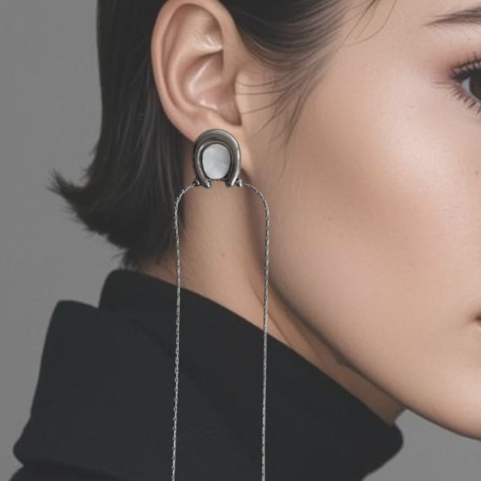 耳元に余白のあるラインをつくり、凛とした印象を添えるアイテム。
