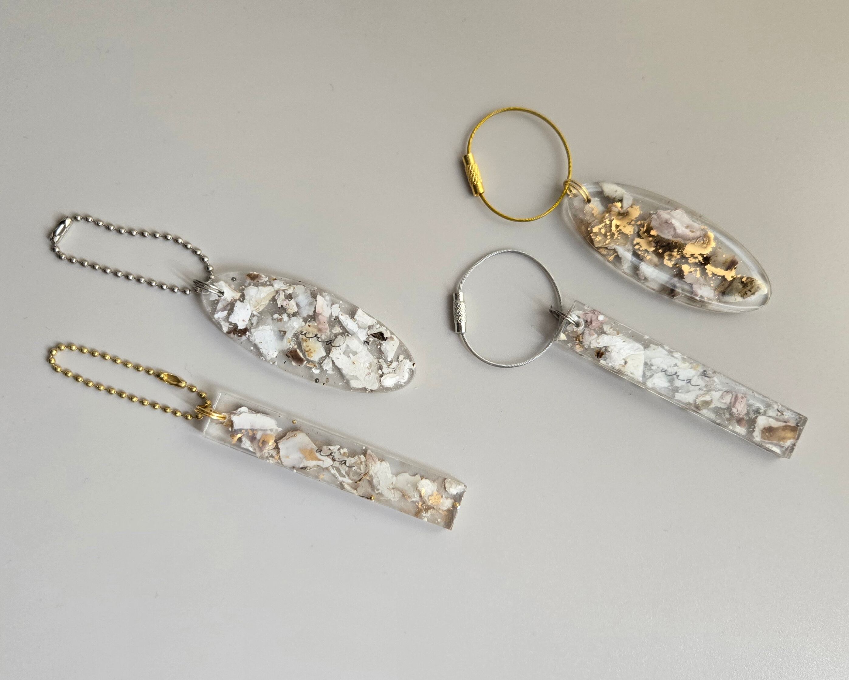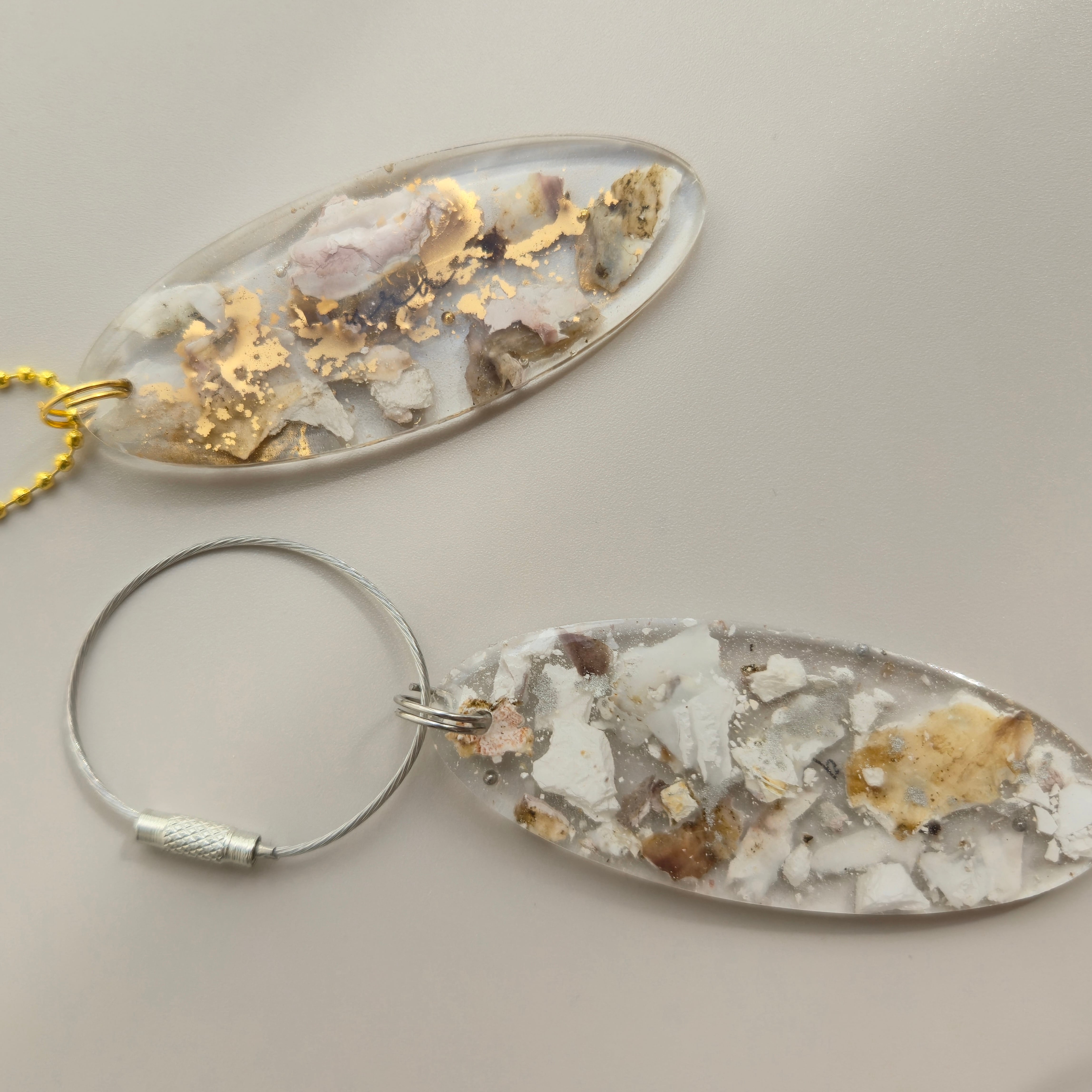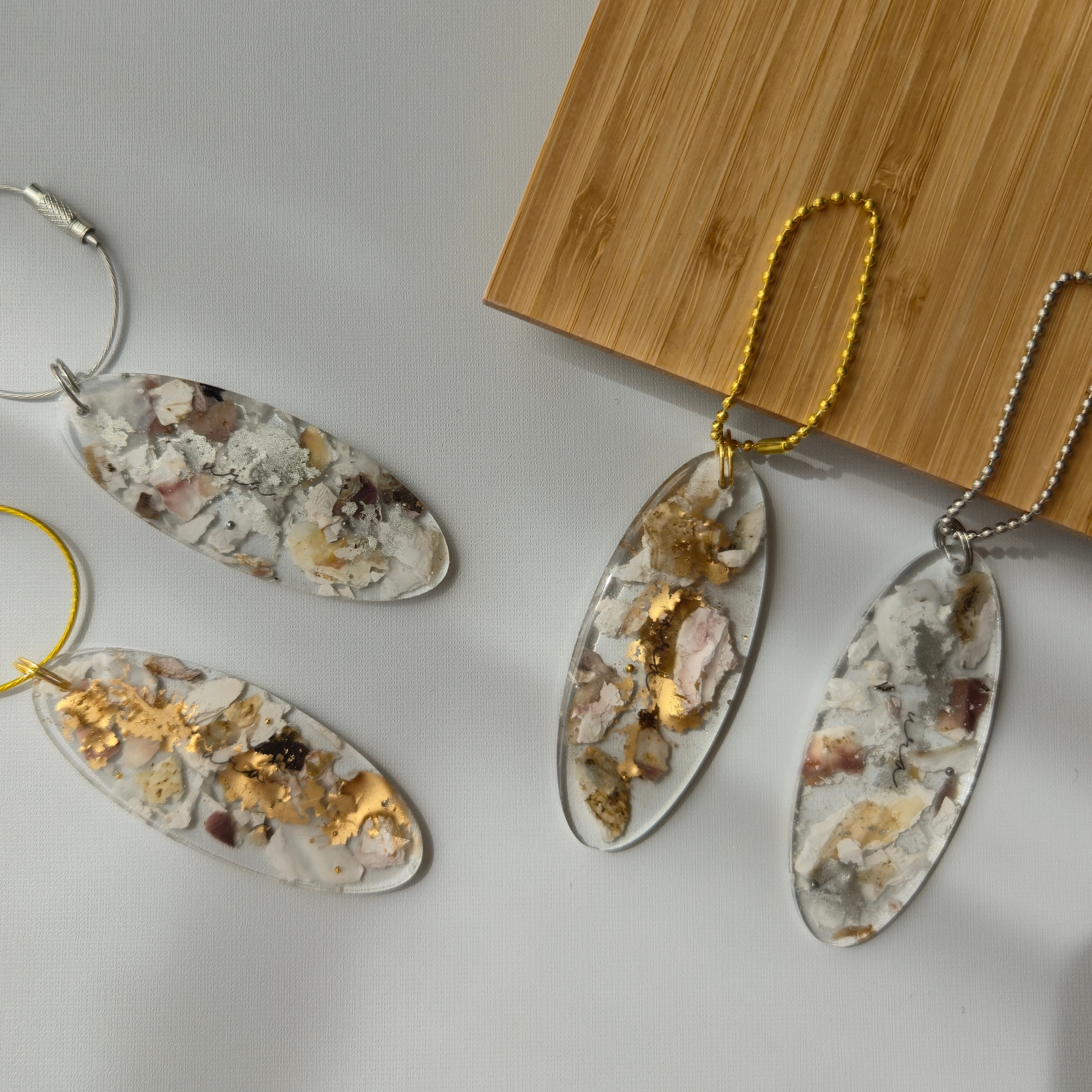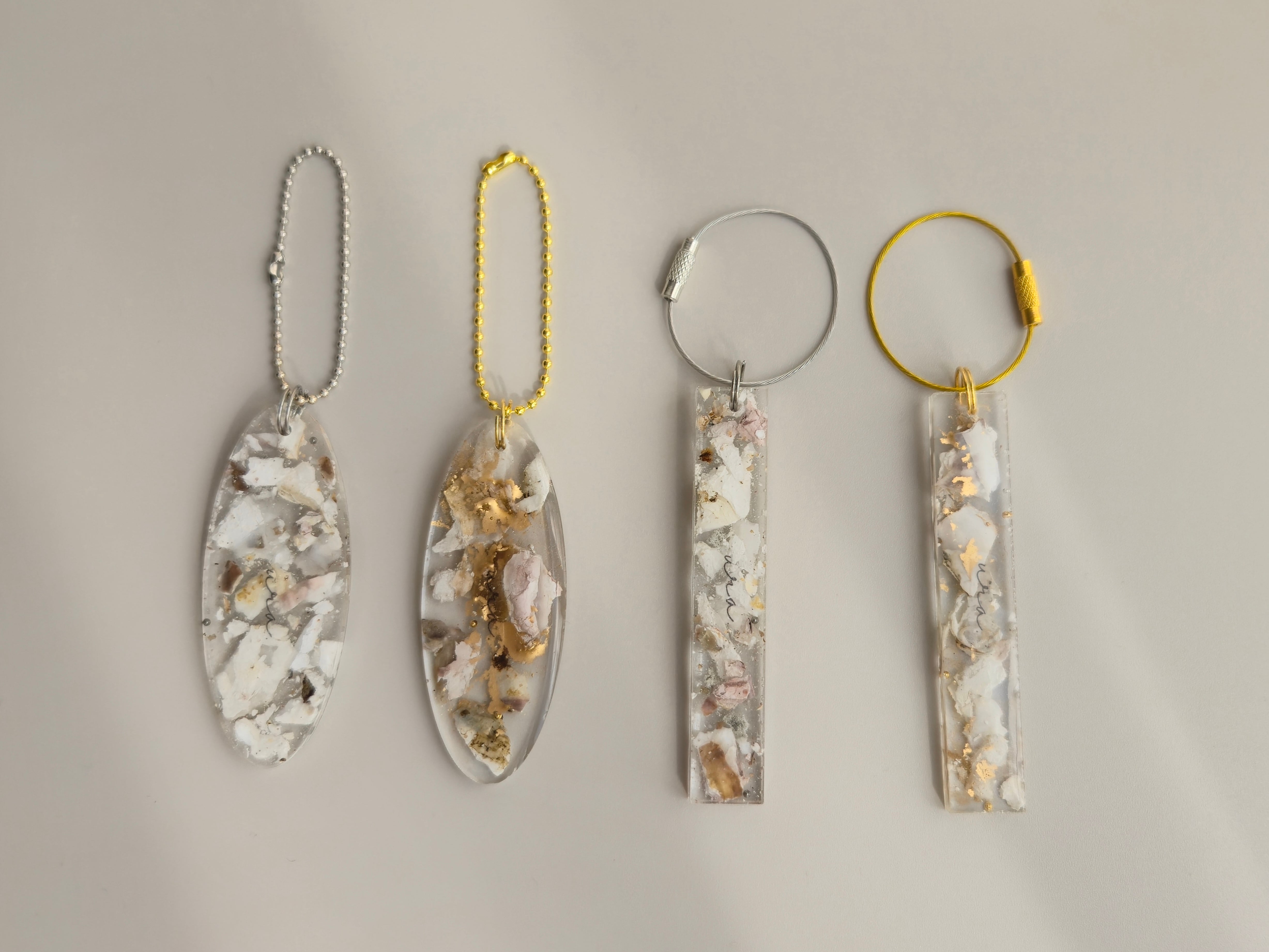 [Renewal] ルームキー風 牡蠣殻キーホルダー(オーバル) ゴールド/シルバー