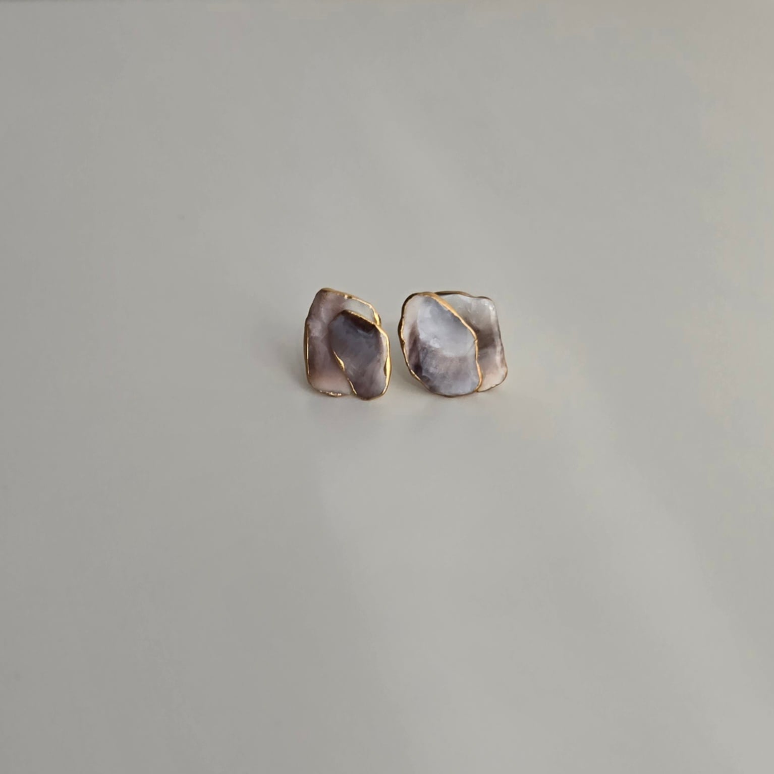 牡蠣殻×金継ぎ 欠片重ね付けピアス