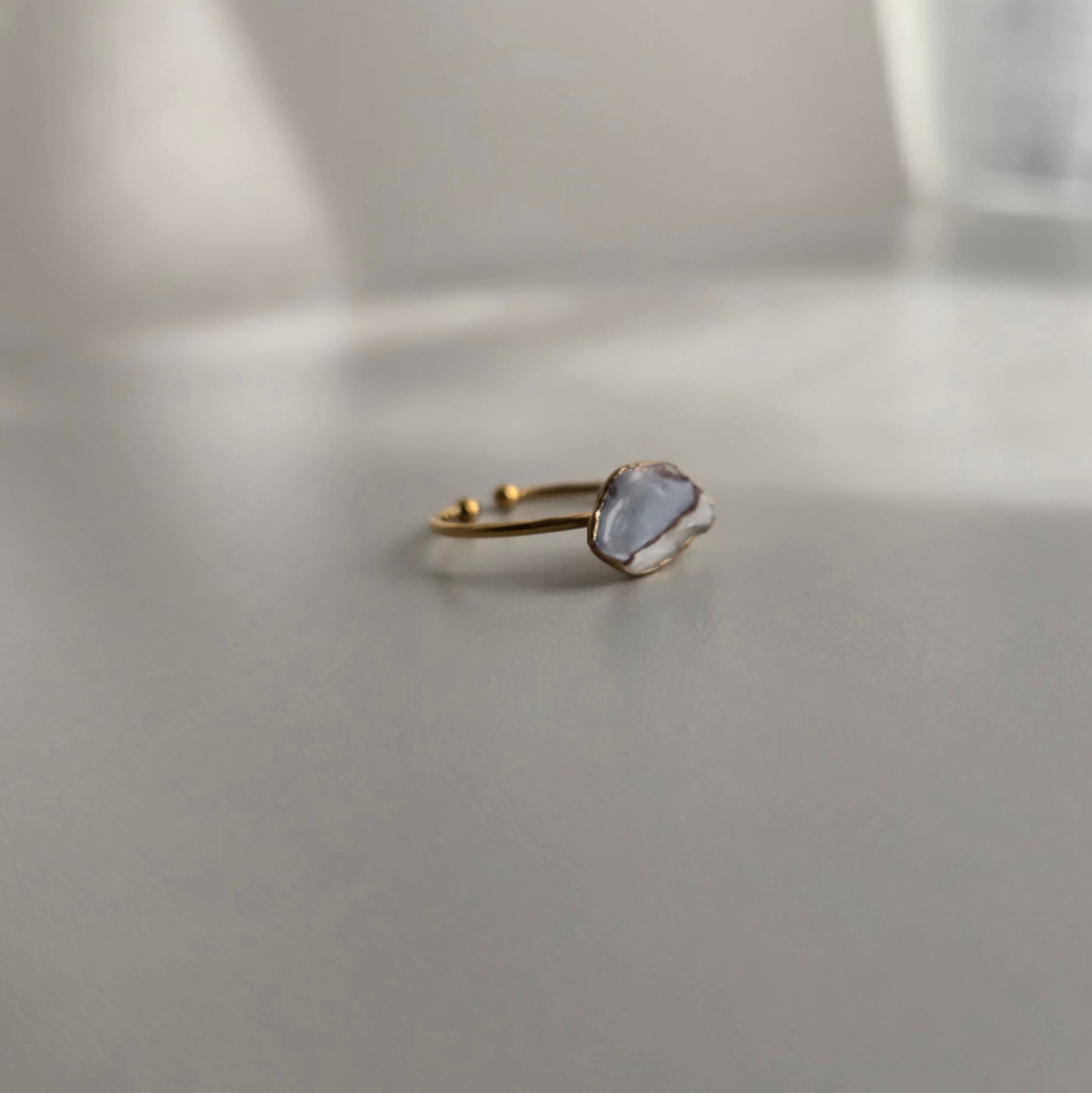 oyster shell stainless ring ( GD / 8-9号 ) 牡蠣殻×金継ぎフォークリング サージカルステンレス #146