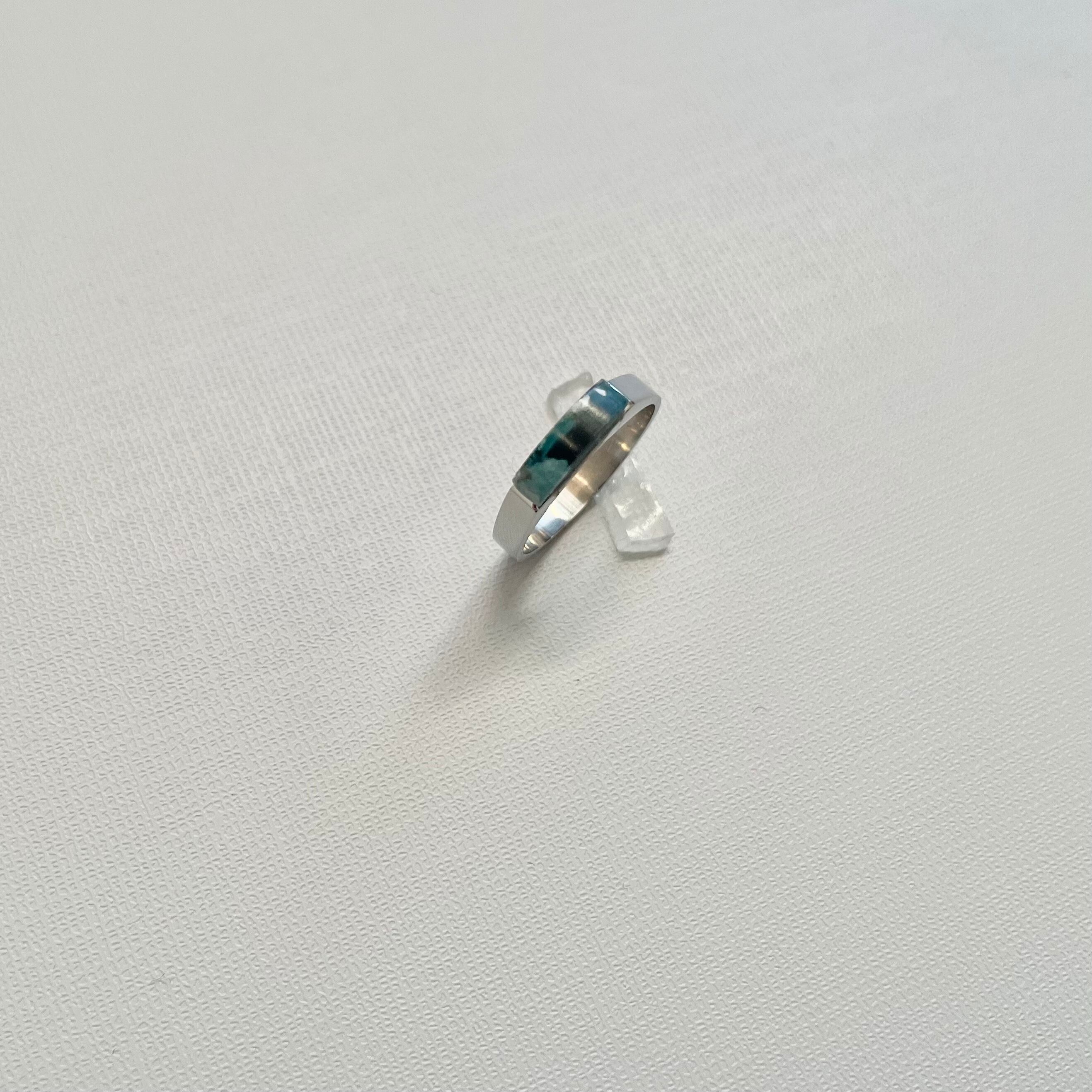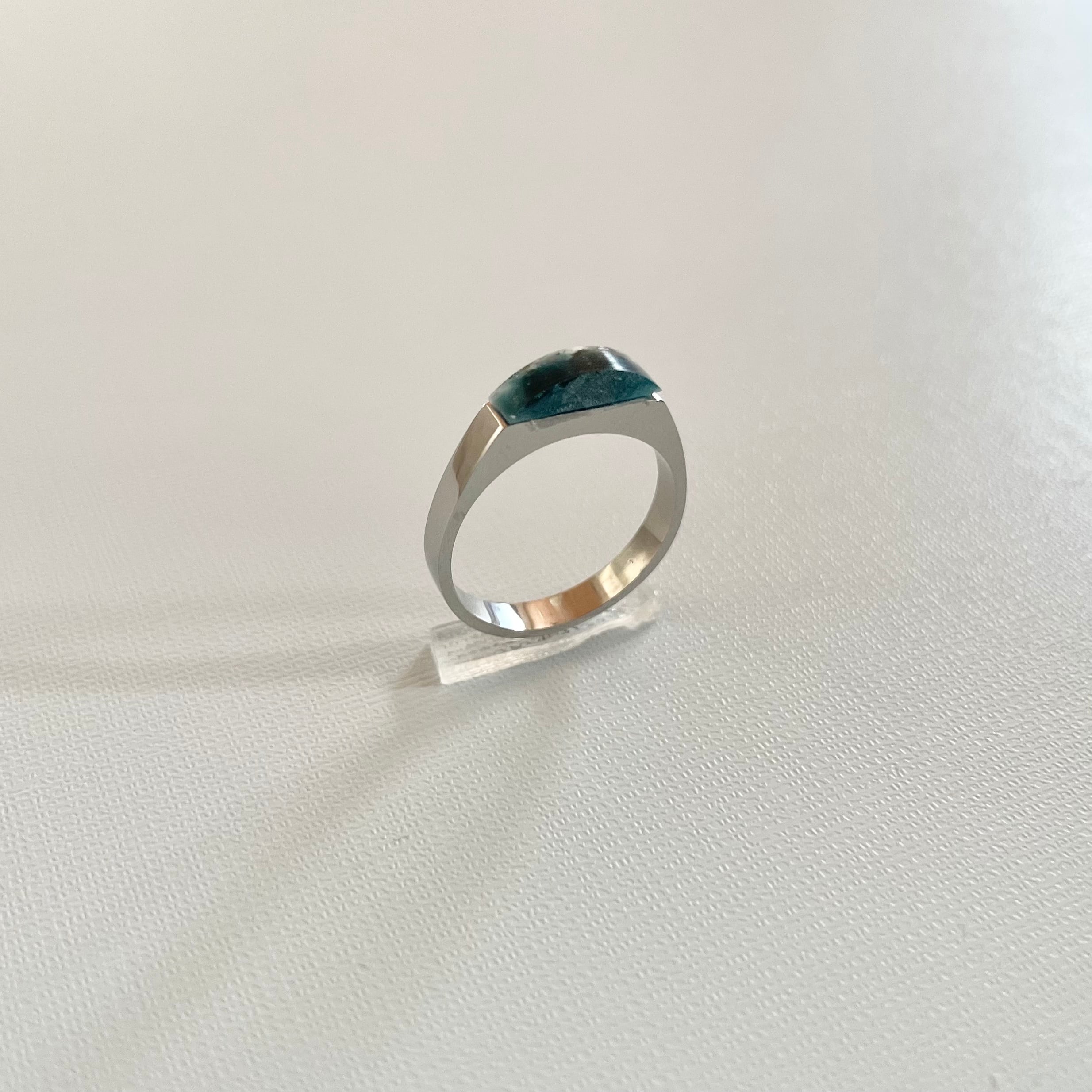 樹脂で固めた牡蠣殻(オーバルトップ)を合わせたスタイリッシュなリングです。