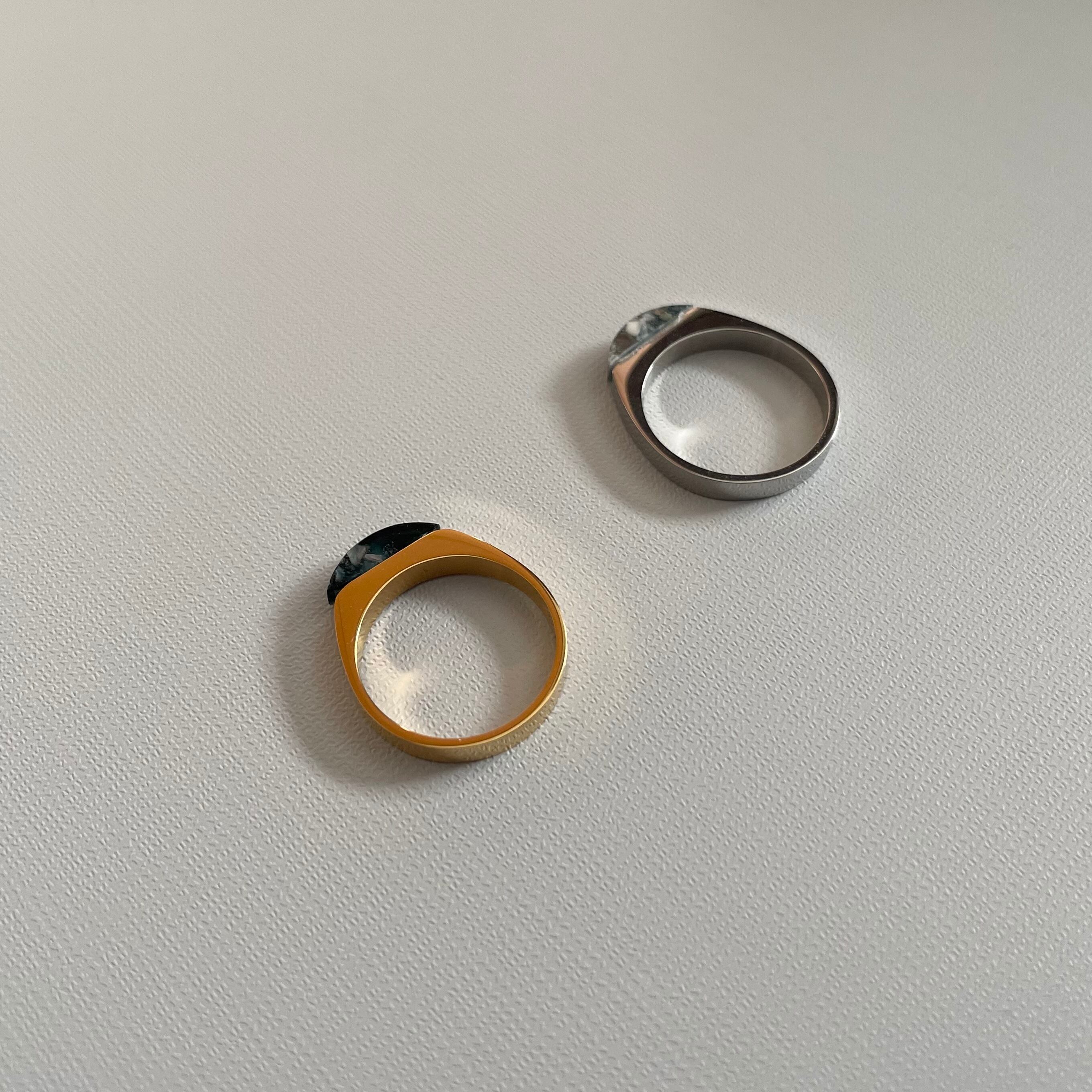 牡蠣殻×シグネットステンレスリング(オーバル/ゴールド)