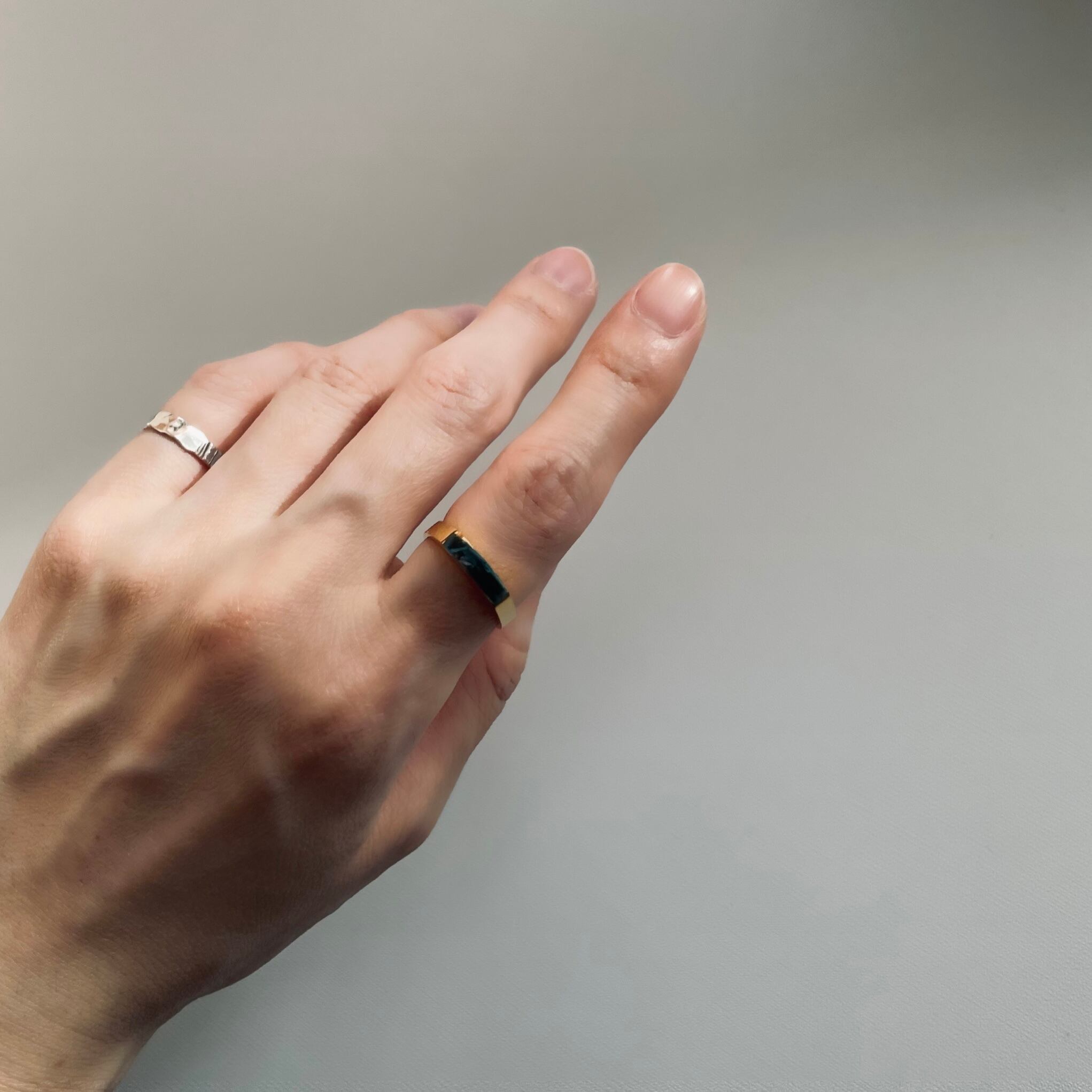 樹脂で固めた牡蠣殻(オーバルトップ)を合わせたスタイリッシュなリングです。