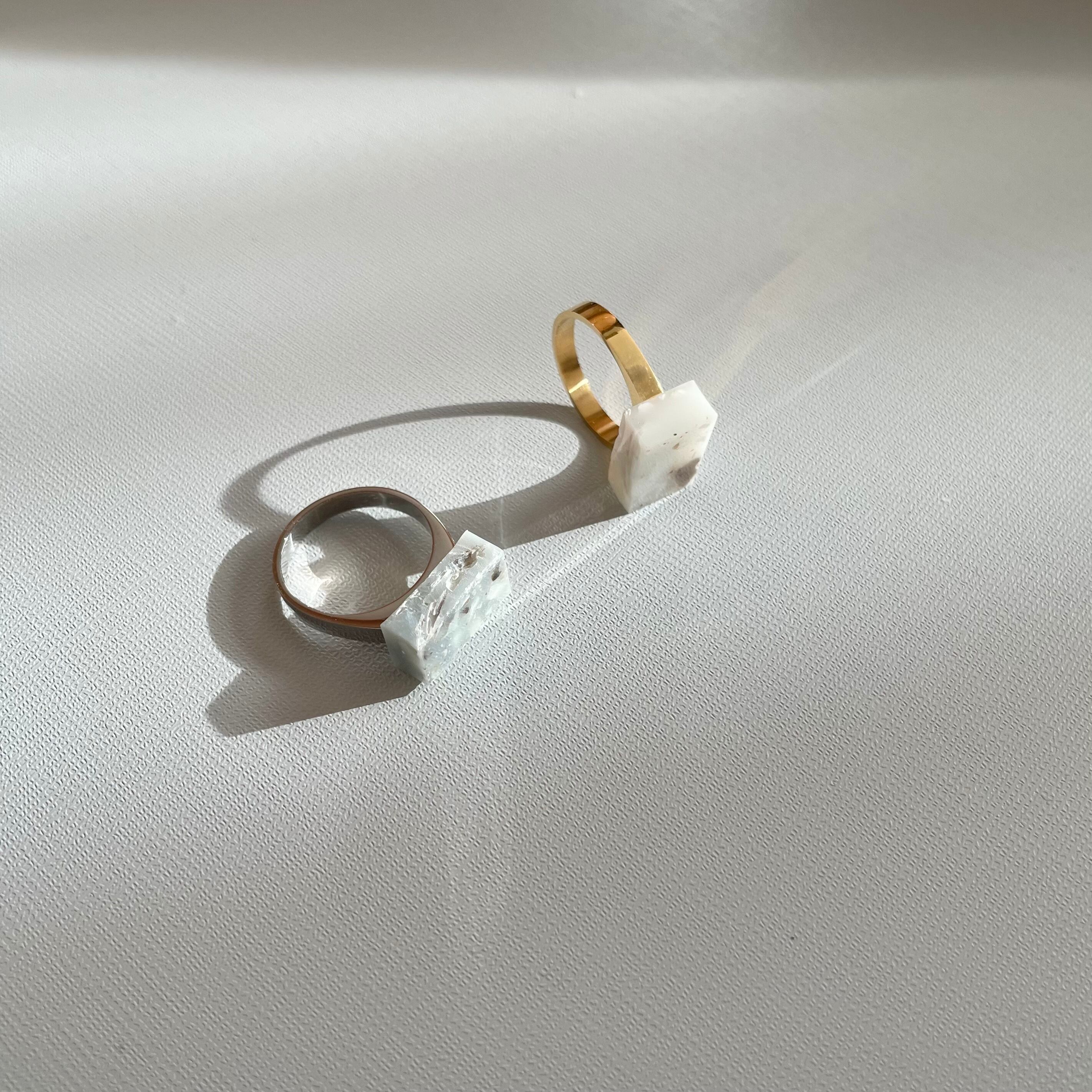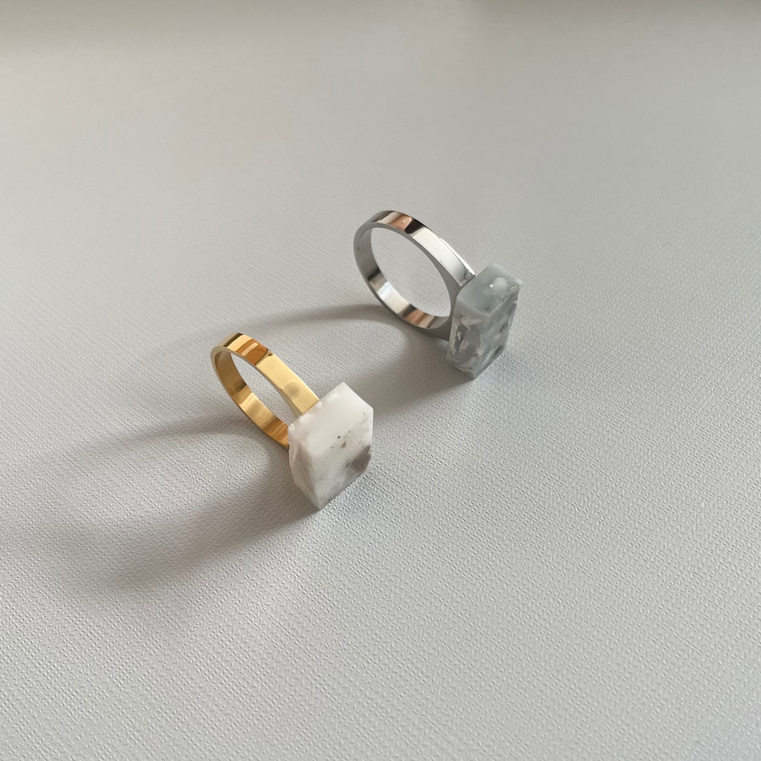 樹脂で固めた牡蠣殻(スクエアトップ)を合わせたスタイリッシュなリングです。